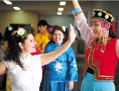 | 习近平主席于6月4日至6日对墨西哥进行国事访问。中国和墨西哥同为文明古国,两国交流源远流长。作为重要新兴市场国家和发展中大国,近年来,中墨两国关系快速发展,经贸、文化、旅游等领域的互利合作成果丰硕。图为2013年2月9日,在墨西哥首都墨西哥城举行的欢庆蛇年春节中国文化展演活动上,几名当地女孩在演出前练习。 新华社记者 施思思 摄 |