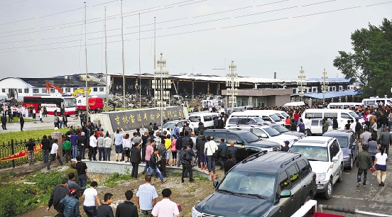| 6月3日,员工家属及附近居民围在现场等待搜救结果。当日,记者从吉林省德惠市米沙子镇宝源丰禽业有限公司火灾现场救援指挥部获悉,截至15时20分,火灾共造成119人遇难。伤员救治和现场搜救工作还在进行中。 新华社记者 王昊飞 摄 |