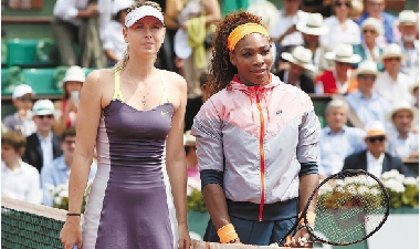 6月8日,在2013年法国网球公开赛女单决赛中,美国选手小威廉姆斯以两个6比4横扫俄罗斯选手莎拉波娃(左),夺得冠军。 新华社发