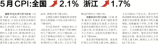 本报杭州6月9日讯 (记者 李倩 通讯员 吴晓燕 李莉) 据国家统计局浙江调查总队调查,5月份全省居民消费价格总水平比上年同期上涨1.7%,价格涨幅与上月持平;与上月相比,全省居民消费价格总水平下降0.4%。