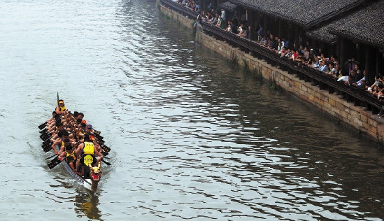 6月11日,嘉兴全国龙舟邀请赛之环城拉力赛鸣锣。来自全国各地的22支龙舟队相聚嘉兴环城河上,吸引上万市民和游客前来观战。 记者 储永志 摄