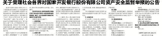 关于受理社会各界对国家开发银行股份有限公司资产安全监督举报的公告