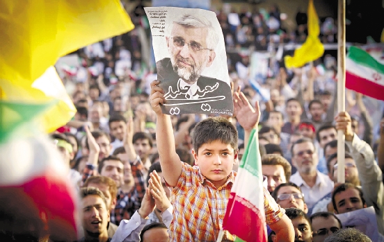 6月12日,在伊朗首都德黑兰,伊朗总统候选人、首席核谈判代表贾利利的支持者参加竞选集会。 新华社发(艾哈迈德 摄)