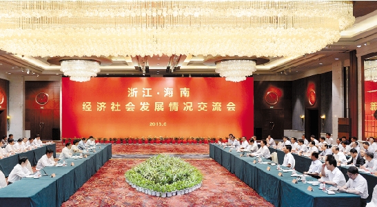 6月13日,浙江海南经济社会发展情况交流会在杭举行。 本报记者 黄曙林 摄