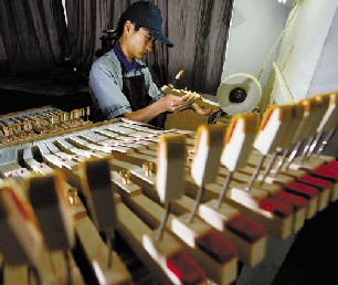 钢琴的88个键,需要男工来认真打磨,以取得最佳的手感。