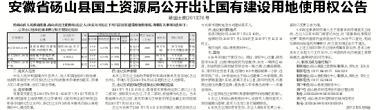 安徽省砀山县国土资源局公开出让国有建设用地使用权公告
