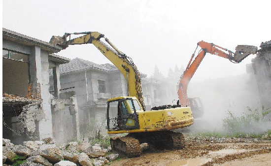 图为余姚市兰江街道一天半拆除12栋违建别墅。 黄芳 摄