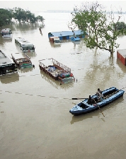 6月19日,在印度首都新德里的亚穆纳河沿岸,汽车被洪水淹没。印度救灾部门20日说,印度北部持续数日暴雨带来的洪水及泥石流等灾害造成的死亡人数已上升至182人。《印度时报》报道说,至今仍有7万人下落不明,最终死亡人数可能达数千人。 新华社发