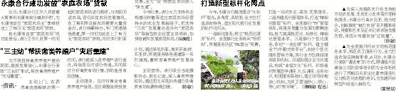 今年以来,该行大力支持农业规模化种植等适应家庭农场经营特点的农业发展新路子,把支持“三农”发展重点逐步向“家庭农场”等新型农业经营主体倾斜,加快培育和发展家庭农场。(胡美霞)