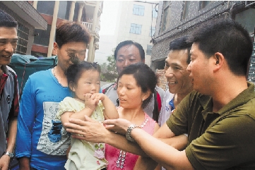 6月21日,被救的琪琪与父母、救人者在一起。 吴晓鹏 摄