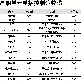| 化工(环保)类 | 253 | 其他类(内地西藏新疆中职班园艺类) | 330 |