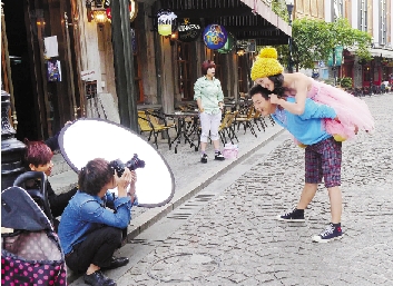 宁波老外滩,摄影师正在给新人拍摄婚纱照。 许翰为 摄