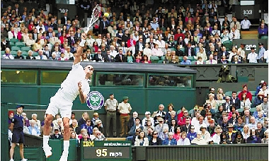 6月24日,2013年温布尔登网球赛进入首个比赛日。揭幕战中,赛会七冠王费德勒仅用时69分钟,以3比0横扫罗马尼亚老将哈内斯库,晋级次轮。 视野网供图