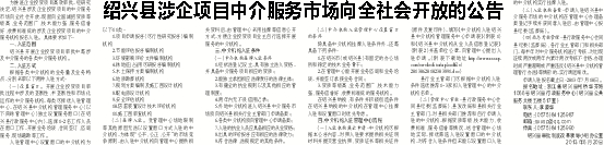 绍兴县涉企项目中介服务市场向全社会开放的公告