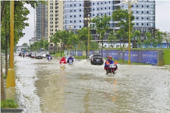 6月28日,桐庐县城滨江路学圣广场路段出现严重积水。持续强降雨导致分水江、富春江水位上涨。 何小华 黄强 胡一锋 摄