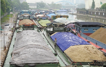 6月28日,受连日暴雨影响,钱塘江流域全线封航,三堡船闸停止运行。目前,强降雨已迫使600余艘船舶滞留。 本报记者 董旭明 摄
