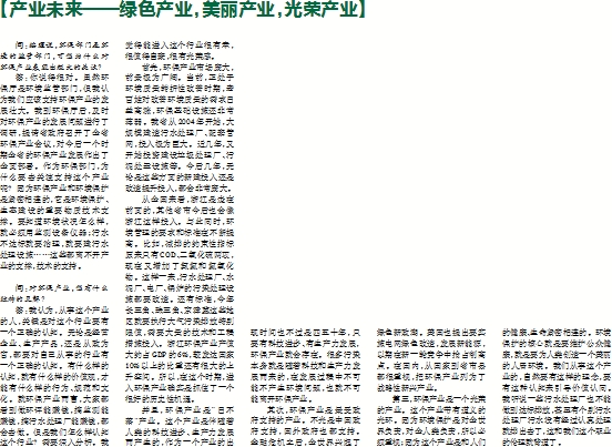 【产业未来——绿色产业,美丽产业,光荣产业】