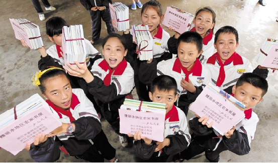 | 6月29日,省新闻出版局、省出版联合集团、浙江日报报业集团联合为丽水地区农村孩子送上6万册优秀少儿读物。经本报“佳友民情快车”发起,丽水市委宣传部等单位已筹集400余万元资金,为500所“少儿之家”每所配送价值8000元的图书。 雷宁 摄 |