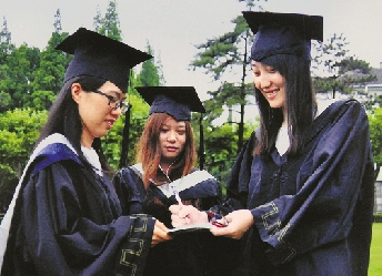 要毕业离校了,杨希晨和同学们相互签名留言。