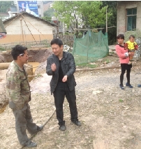 杨林镇党委书记严颂华到下庄村做拆迁户思想工作。