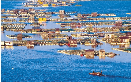 一种被称为多营养层次生态养殖的技术眼下正在象山县西沪港海域得到推广,既把水产养殖对生态系统的危害降到最低,又能提高池塘综合经济效益,养殖户可乐了。 张陆沁 摄
