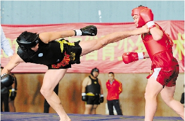 近日,“体彩杯” 2013年浙江省青少年武术散打冬季锦标赛在台州市路桥区文体中心举行,来自全省10支代表队近200名男女运动员,参加为期2天的男、女共21个级别赛项的角逐。 王保初 摄