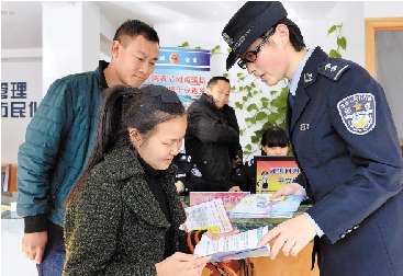 绍兴越城区公安分局城南派出所在辖区的流动人口服务所设立春运平安咨询服务点,为外来务工者和新居民提供回乡服务。 袁云 摄
