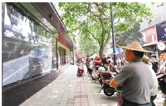 临安市民聚在商场大屏幕前看阅兵直播。 金凯华 摄