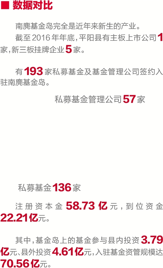 其中,基金岛上的基金参与县内投资3.79亿元、县外投资4.61亿元,入驻基金资管规模达70.56亿元。