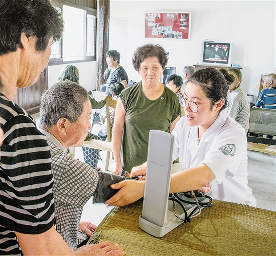 “流动医院”开进藤桥镇石垟村为村民们提供医疗服务。