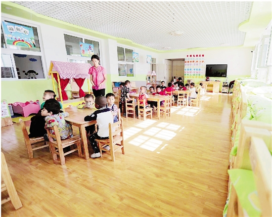 窗明几净的校舍里,维吾尔族幼儿在老师的带领下学唱汉语歌曲。