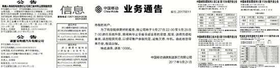 为了向您提供更好的服务,我公司将于9月27日22∶00至9月28日7∶00进行系统升级,期间将停止全省全部业务的受理、提醒、话费充值和查询,请您提前充值,以保证账户余额充足,避免欠费、停机。由此给您带来不便,敬请谅解。