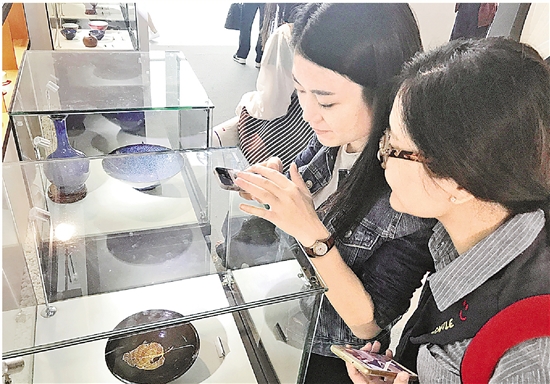 观众在欣赏拍照天目盏。