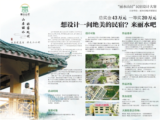 为了更好地促进丽水民宿产业发展,加快当地旅游经济的全面提升,丽水市城乡规划局开展面向全社会、集思广益的“丽水山居”民宿设计大赛。