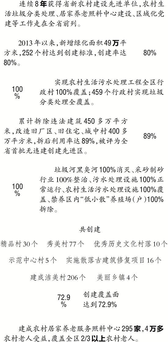 实现农村生活污水处理工程全区行政村100%覆盖;459个行政村实现垃圾分类处理全覆盖。