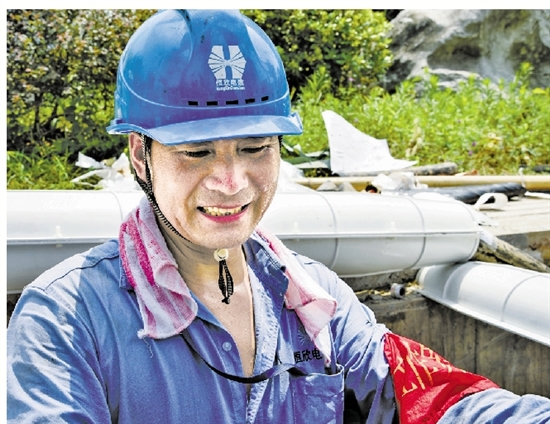 电力工人在电缆井内制作电缆头 朱鲁华 摄