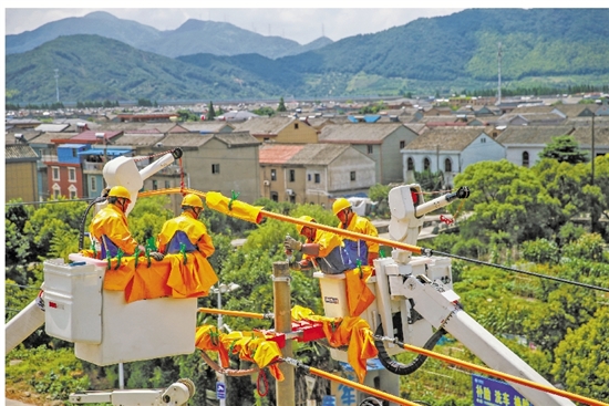 为不影响当地居民用电,电力工人开展带电作业 曾江 摄