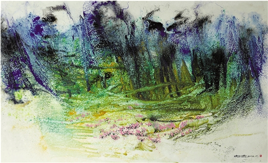 层次分明,过渡自然,妙趣天成。画家申古博将矿物色与水墨有机融合,形成了技法风格独特的“岩彩山水”,形象地表达出他所理解的东方山水绘画的精神气质。他的笔墨,空灵、沉静、拙朴,总会把人带至一个神秘的地方,带入一种更高的境界。这种境界既属于艺术,也属于人生。