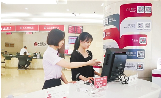 中国银行台州分行工作人员热情引导客户办理相关业务 冯徐芬 摄