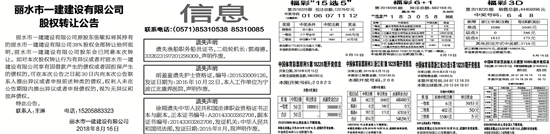 丽水市一建建设有限公司原股东张敏拟将其持有的丽水市一建建设有限公司38%股权全部转让给何祖明,丽水市一建建设有限公司股东会已同意本次转让。如对本次股权转让行为有异议或者对丽水市一建建设有限公司享有因借款产生的债权或者因担保产生的债权的,可在本次公告之日起30日内向本次公告联系人提出异议或者申报前述种类的债权,权利人未在公告期限内提出异议或者申报债权的,视为无异议和放弃债权。