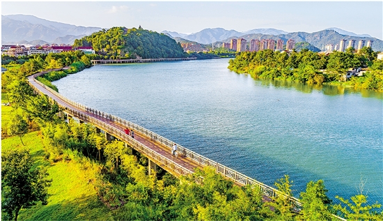 市民沿着永安溪绿道散步、骑行。 孔潇潇 摄