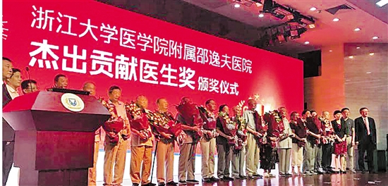 上午10时,浙江大学医学院附属邵逸夫医院颁发“邵医杰出贡献医师奖”,为20名老医师送去鲜花与奖章,以表彰他们在建院过程中作出的杰出贡献。