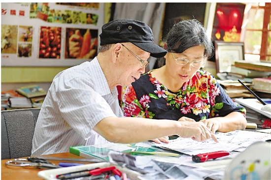 吕立春和老伴在工作室为新一期《新昌摄影》排版。