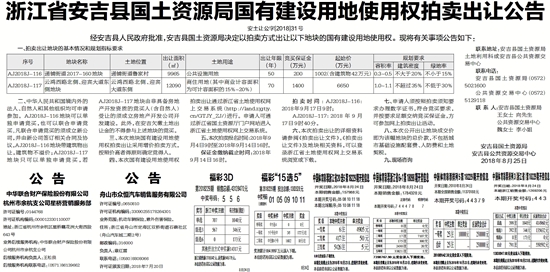 浙江省安吉县国土资源局国有建设用地使用权拍卖出让公告