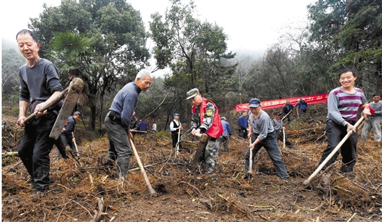 桐屿街道“五村连片”发展,干部带领村民进行荒地复垦