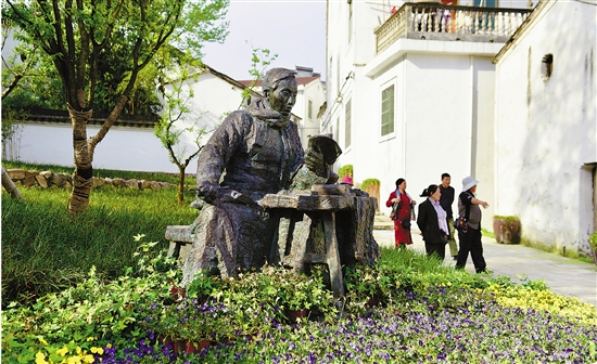 义乌分水塘村里的陈望道铜像。 拍友 钱旭升 摄