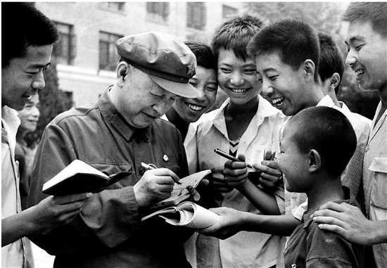 1978年8月,钱学森来到全国青少年航空夏令营营地,为青少年签名留念。 新华社发