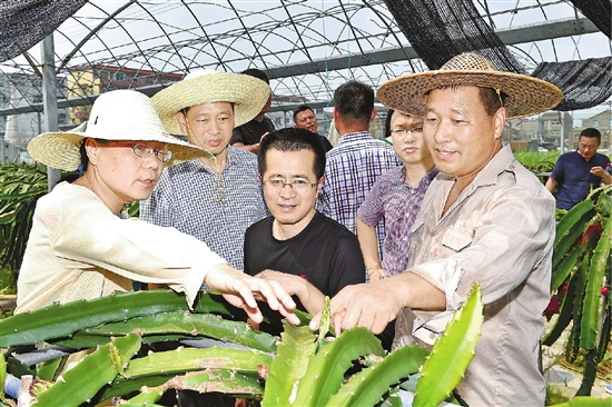 台风过后,一组农业科技专家在台州市路桥区,顶着烈日访牧场、进果园、下鱼塘,为灾后恢复农业生产出谋划策。 本报记者 潘海松 摄