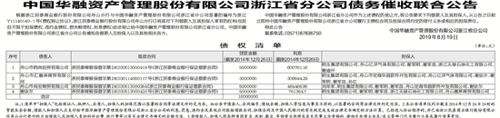 中国华融资产管理股份有限公司浙江省分公司债务催收联合公告