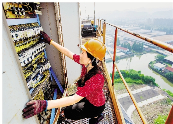 鲁海花正在检查塔吊运行情况。